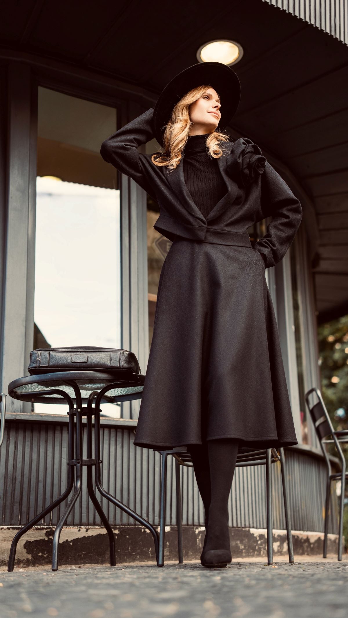 Czarna spódnica z gęsto tkanej wełny